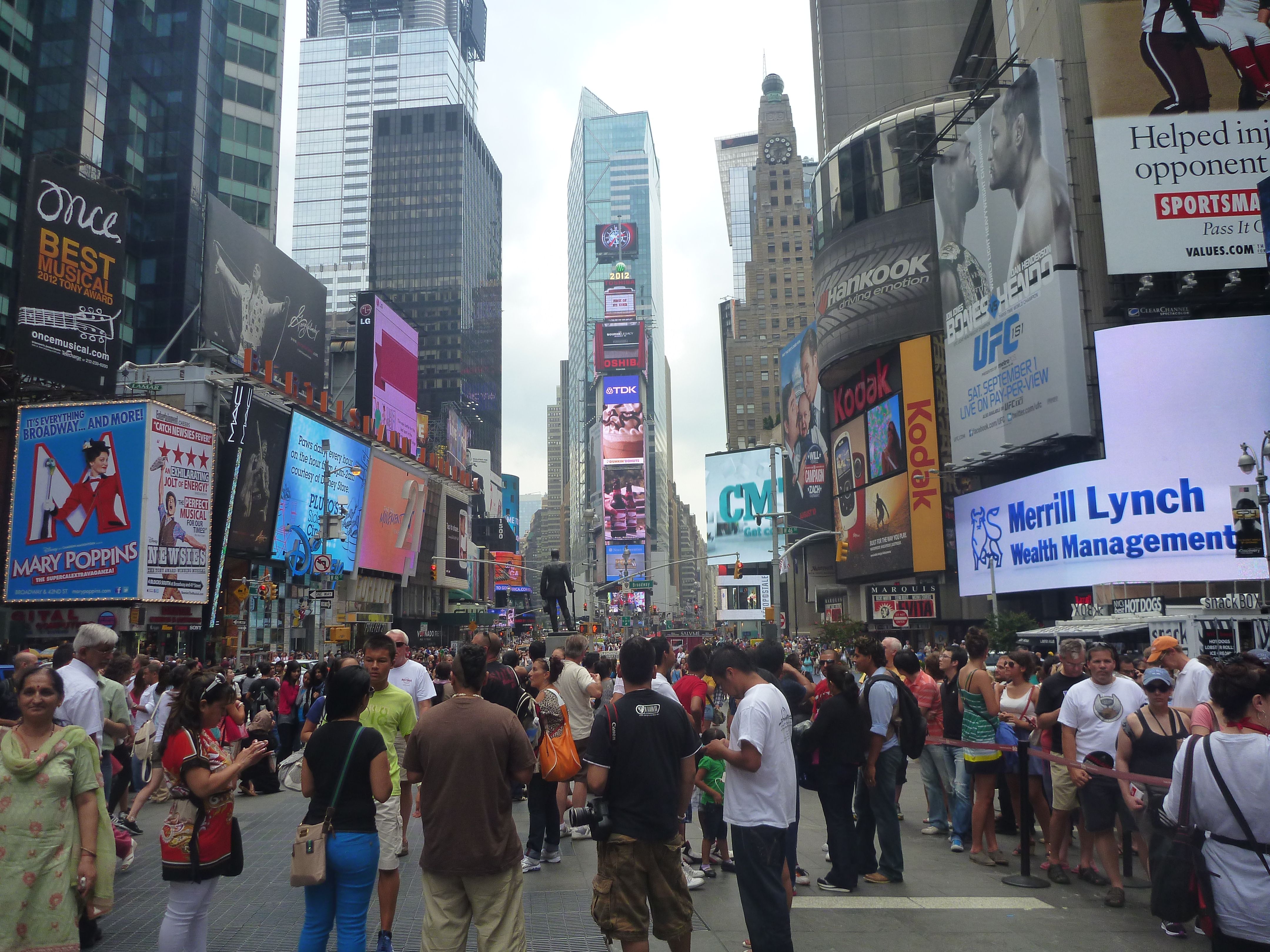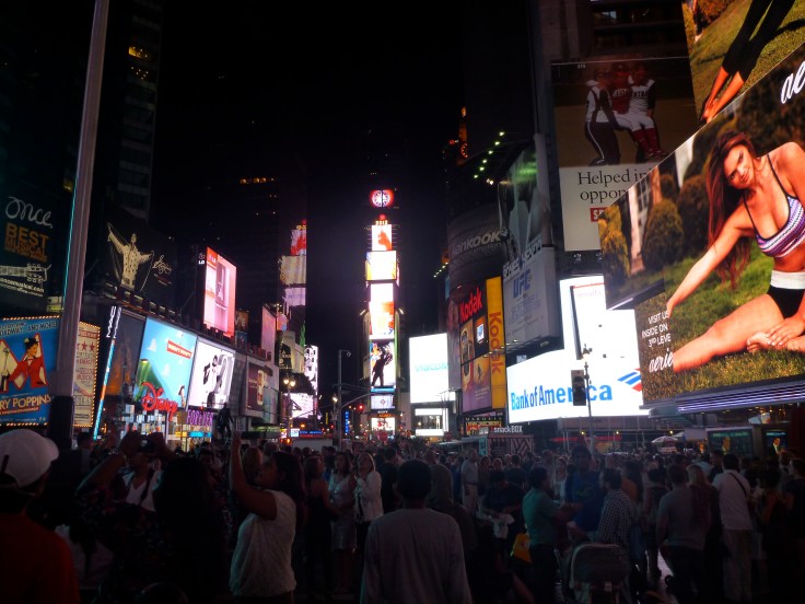 After finishing our very long (and by this time painful) stroll down 5th avenue we headed to Duffy Square in Times Square to join the long 3pm line to buy discounted broadway tickets.